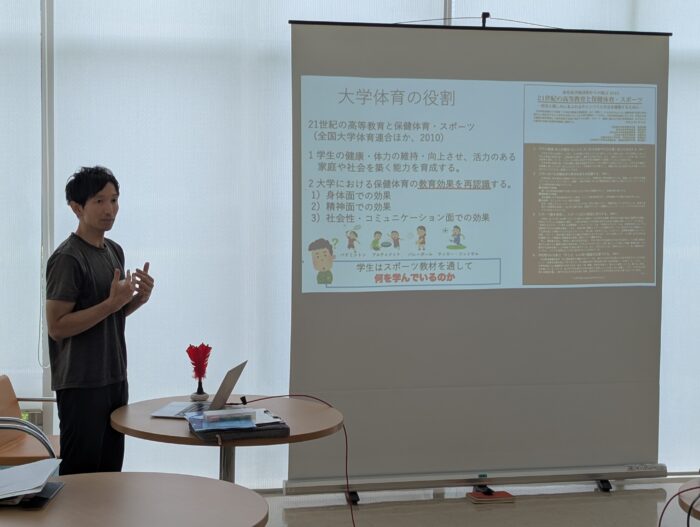 インディアカを大学授業に導入し、効果分析をされた常葉大学短期大学部田村元延先生よりインディアカ授業から明らかとなった研究成果などを紹介。小松原指導技術委員長から、インディアカの歴史や種目の持つ特性などを解説
